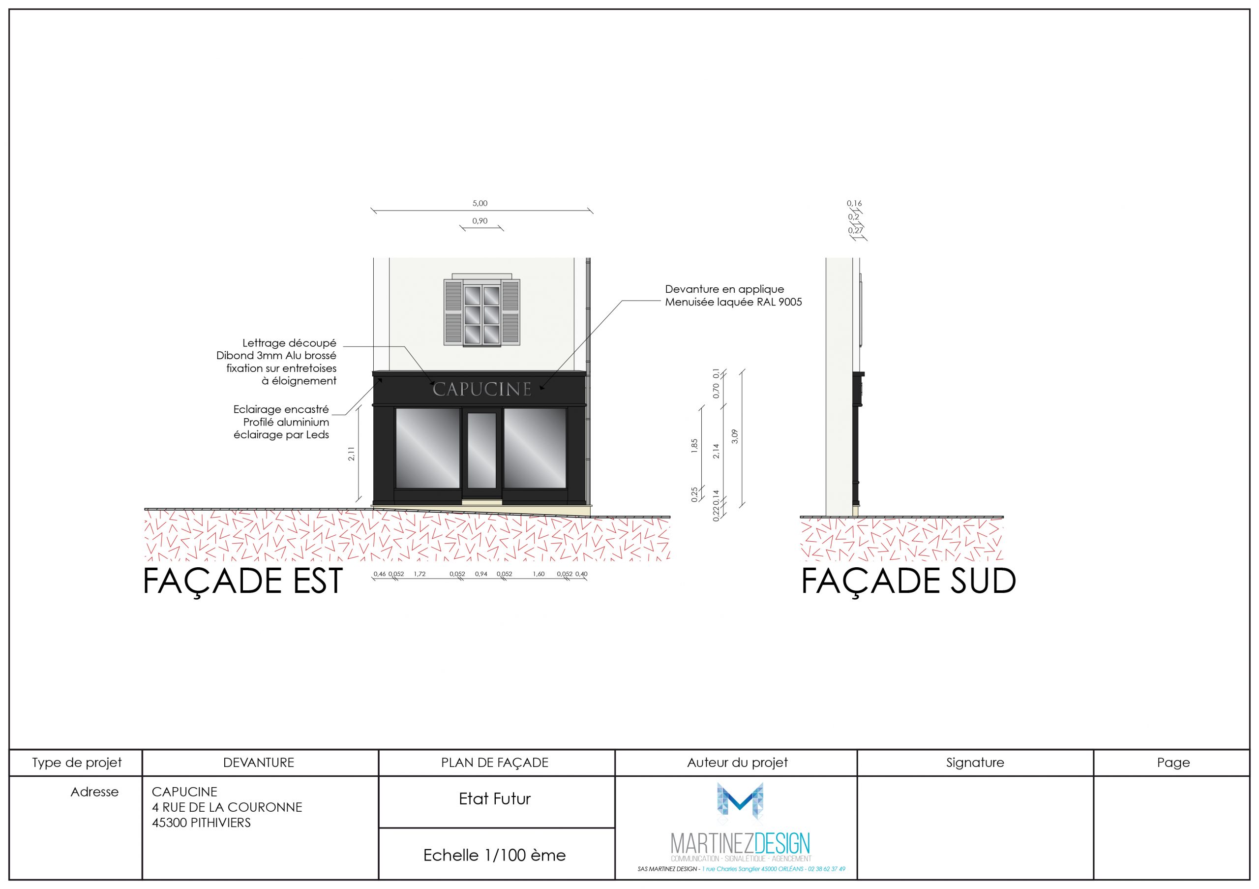 L’enseigne est composé d’un lettrage decoupé en Dibond 3mm en alu brossé qui sera fixé sur entretoise à éloignement.