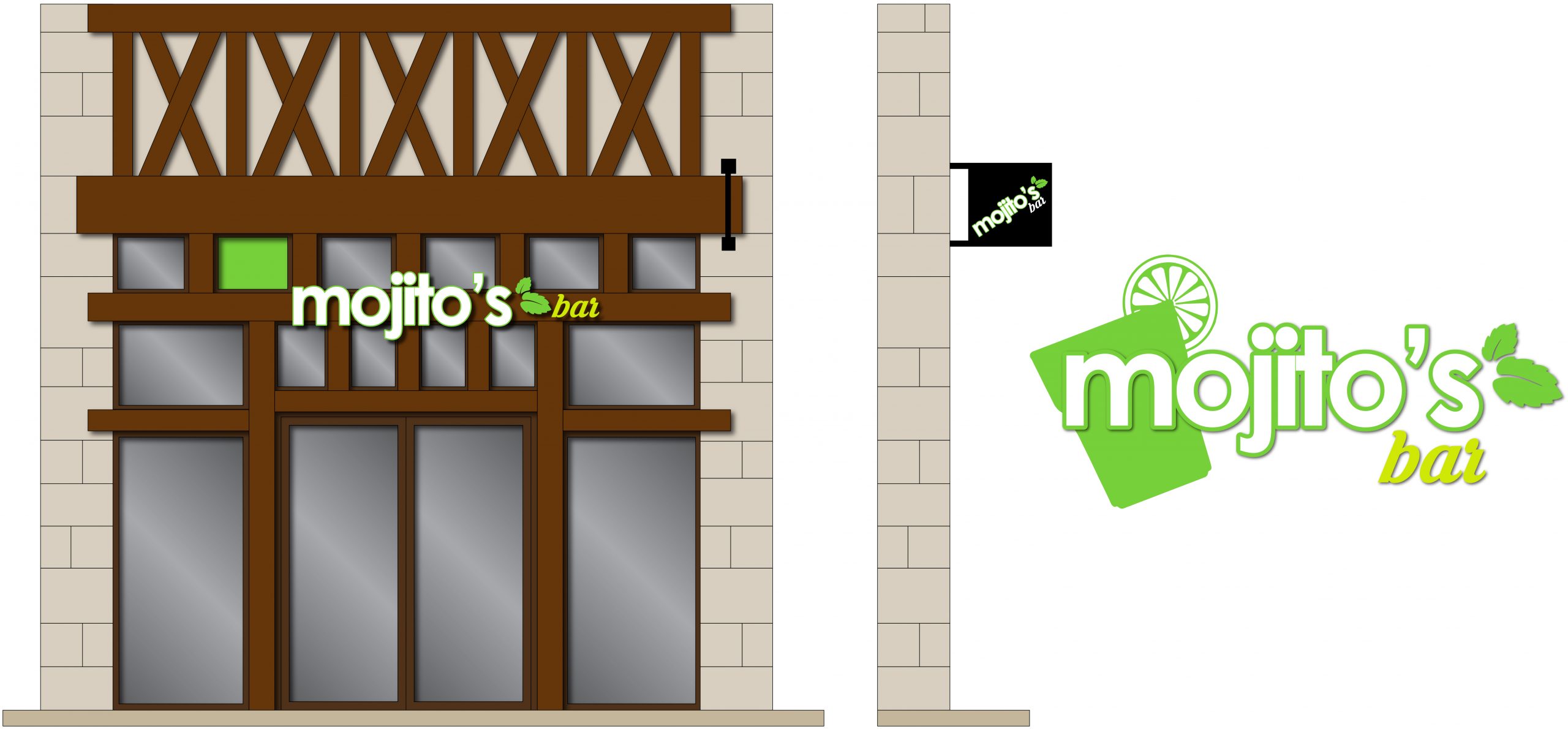 Remplacement du bar noir qui assombrissait la pièce, changé avec un bar bien plus clair fait sur mesures. remplacement également de l’enseigne » Mojito’s bar » avec un flocage complet sur la 2cv.