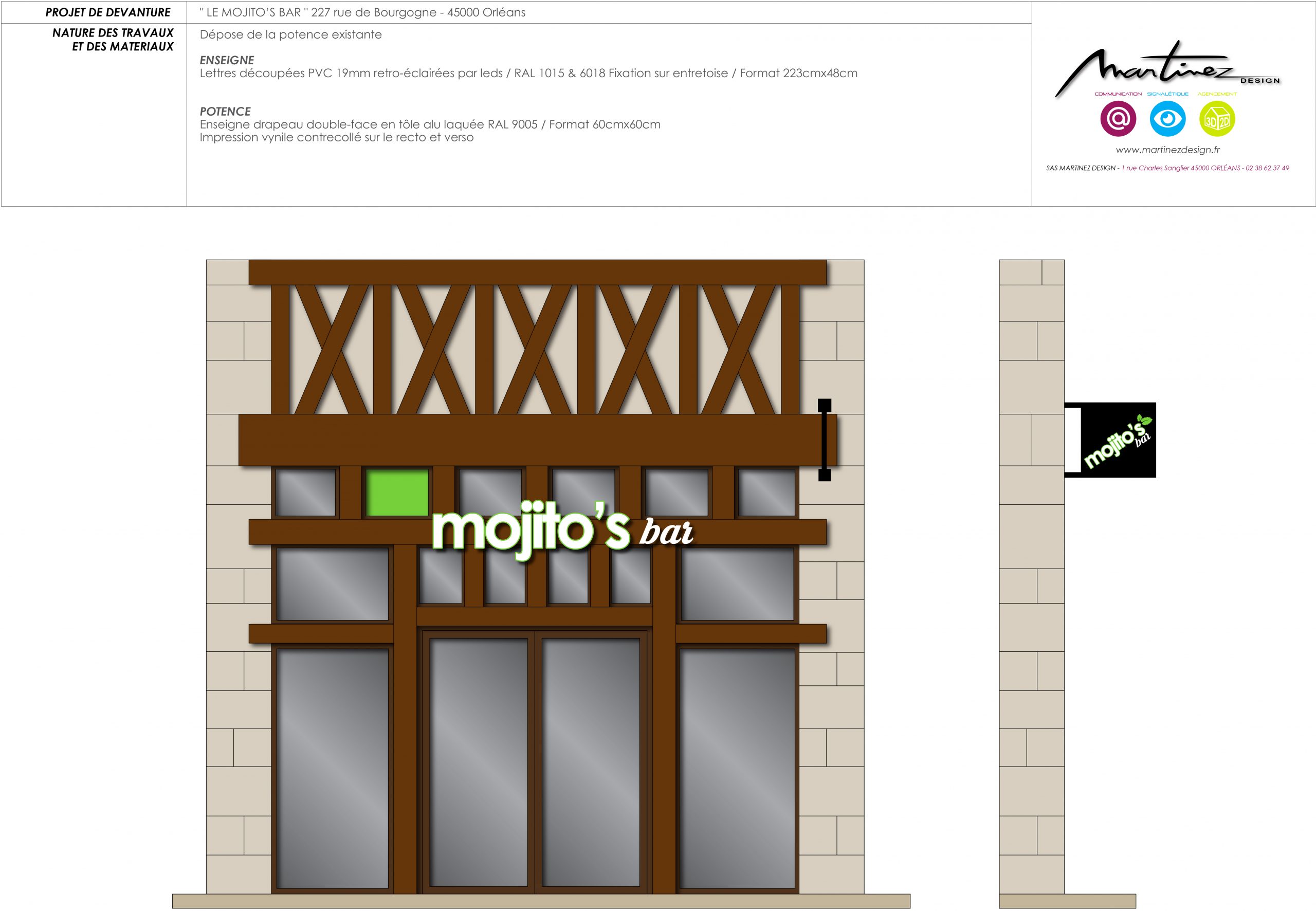 enseignes lumineuses et rénovation du bar pour ce bar au centre ville d’Orléans en secteur sauvegarder.