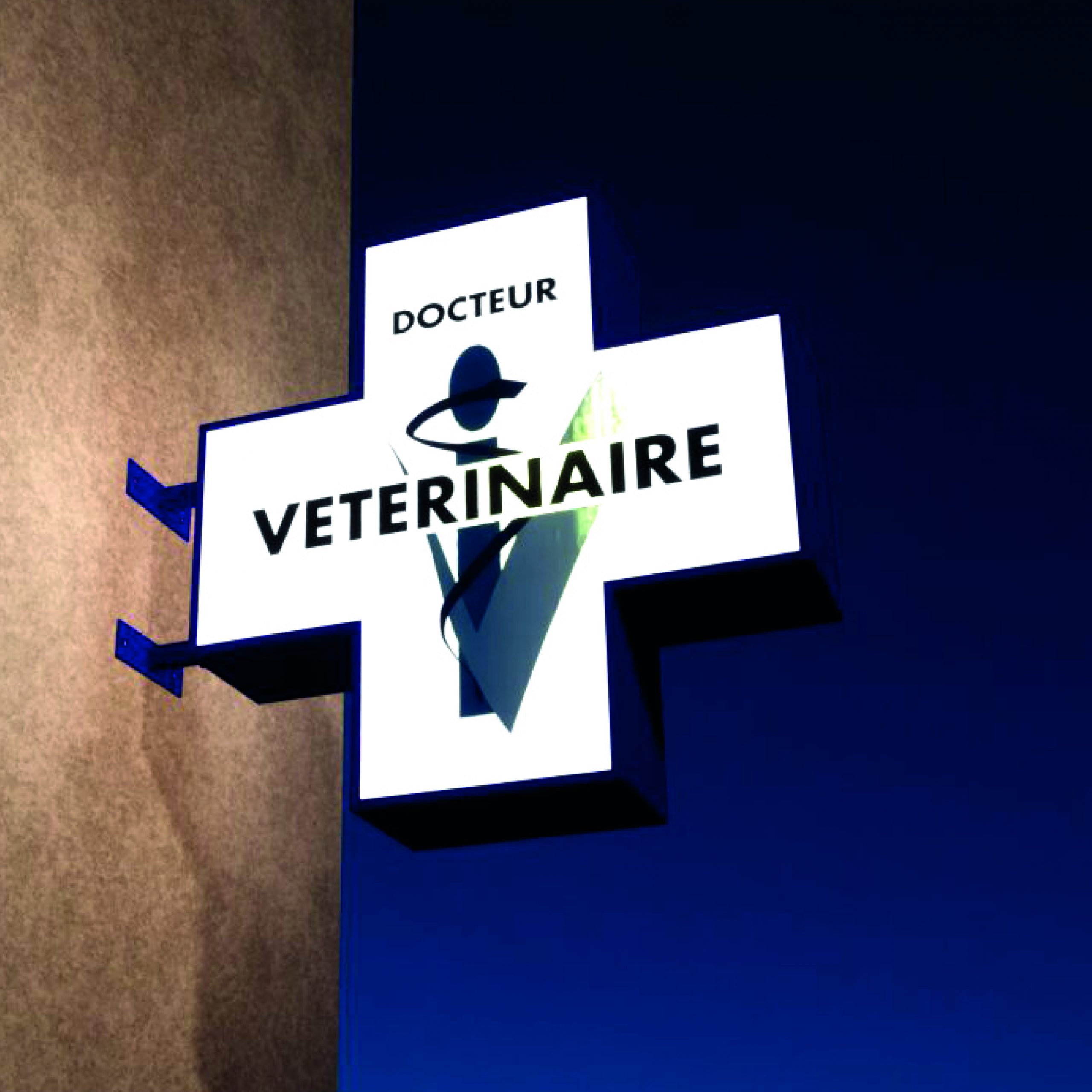 Enseigne Drapeau Croix Vétérinaire Boitier Aluminium Laqué.